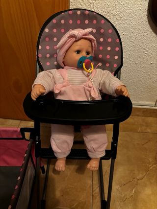 Cuna, trona y muñeca para jugar