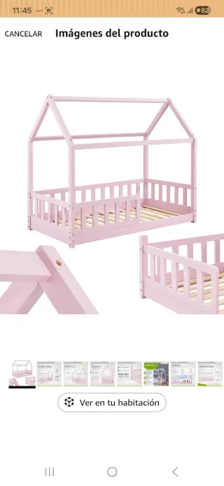 Cama infantil tipo casita rosa