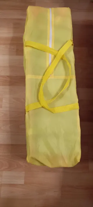 Práctica cuna de viaje para bebés, ideal para llevar a todas partes. Viene en una bolsa de transporte. - Color amarillo. - Cierre de cremallera. - Asas para su transporte. Cuna en buen estado pero se vende sin colchón.