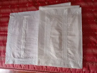Sábana antigua para cuna, con un delicado encaje en los bordes. Su tono beige le da un toque clásico y elegante. - Tejido de algodón. - Detalle de encaje en los laterales.
