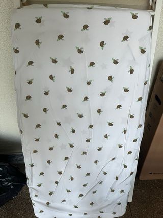 Cuna de viaje portátil con diseño estampado. Pefecto estado. Usada 3 veces. - Laterales de malla transpirable. - Estructura metálica. - Esquinas reforzadas. Medidas 125 x 68 cm. Incluye colchon plegable de 120 x 59.
