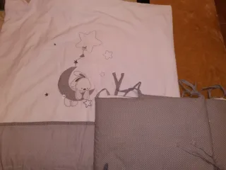 Conjunto de edredón y chichonera para maxicuna con un bonito diseño. Chichonera reversible. En muy buen estado