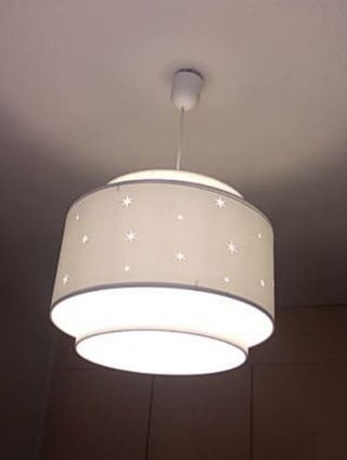 Vendo lámpara gris claro con estrellas pequeñas en blancas en perfecto estado. Bombilla incluida. Realizo las entregas en varias zonas de Madrid (Pregunta sin ningún problema).