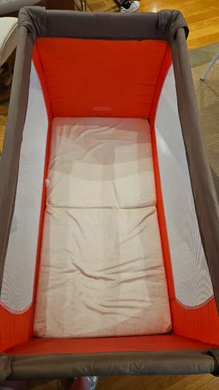 Cuna de vieja comoda y ligera. Facil de montar y recoger. Incluye colchon y sabanas bajeras. Color negro y gris. Con rejillas transpirables