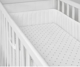 Nido o reductor de cuna reversible, ideal para crear un espacio acogedor para el bebé. Usado muy poco. - Diseño reversible y ajustable con dos caras. - Tejido de una cara: gofre en color gris claro. - Tejido de la otra cara: liso con estampado de estrellas grises. - Medidas 50 x 90 cm. - 100% Lavable en la lavadora.