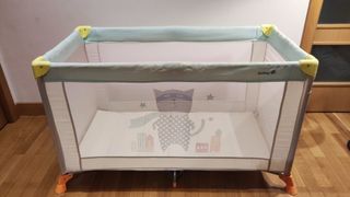 Cuna de viaje plegable, ideal para transportar y usar en cualquier lugar. Su diseño permite un montaje y desmontaje rápido. - Laterales de malla transpirable. - Colchón acolchado. - Estructura resistente. - Se uso 2 veces, por lo que prácticamente la vas a estrenar. - Desde siempre ha estado guardada en caja cerrada en trastero sin humedad por lo que está perfecta.
