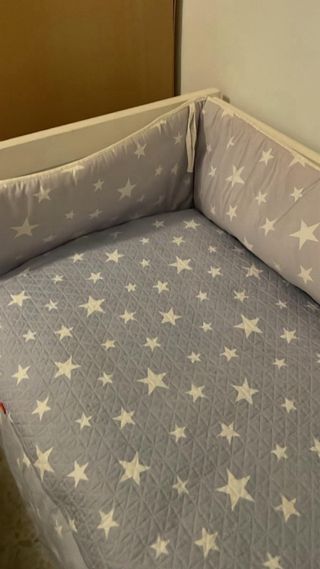 Cuna colecho con colchón, colcha y sábanas