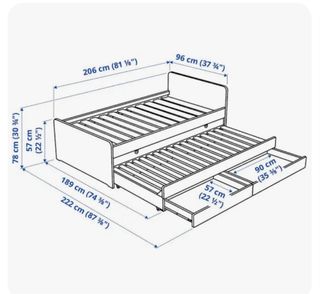 Cama nido de Ikea prácticamente nueva. Ideal para habitaciones juveniles o infantiles. - Medidas: 206cm (largo) x 96cm (ancho) x 78cm (alto). - Incluye dos cajones amplios para almacenamiento. - Estructura de madera resistente y de color blanco. - Colchón no incluido.