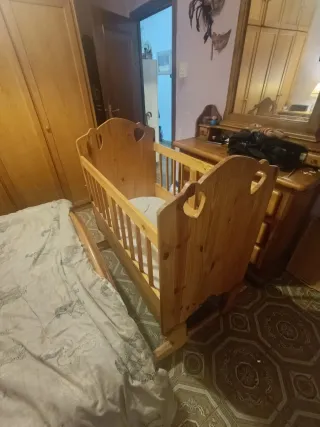 Se vende moisés/cuna para bebé en perfecto estado. Ideal para las primeras etapas del recién nacido. - Cesta de mimbre. - Estructura de madera. - Ruedas para facilitar el movimiento.