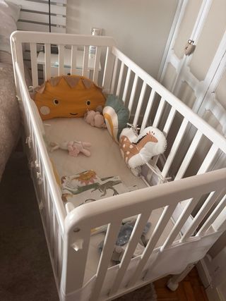 Minicuna colecho Jane Baby Side con 3 juegos de sabanas, relleno nordico y almohada Tiene el colchon original, y otro mas grueso. Se regala minicuna de viaje con mosquitera