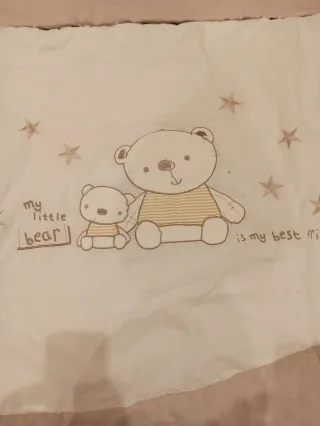 Juego de sábanas para cuna de invierno,tejido micropolar confeccionadas en 100% algodón. Son hechas en Portugal como se ve en etiqueta. Solo lleva sábana encimera, tienen un uso, impecables, puedes meterla una bajera blanca o de colores. Incluyo de regalo un juego polar de invierno compuesto de bajera, encimera y funda almohada, lo regalo porque es perfectamente funcional y es calentito para el invierno pero lo usamos bastante y ya tiene bolitas de los lavados, está gastadín pero deseando dar servicio todavía! - Tejido suave y transpirable. - Diseño bordado con osito y flores. - Tacto agradable para el descanso del bebé.