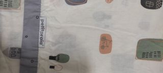 Conjunto de chichonera y colcha para cuna de bebé con un diseño encantador. - Chichonera acolchada con estampado de jirafa, tortuga y mariposa. - Colcha a juego con motivos geométricos y de animales. - Colores pastel suaves y alegres. - Chichonera reversible: un lado estampado de colores y otro lado flores en tonos pastel. - Velcro en la parte inferior para poder sacar el forro fácilmente facilitando su lavado. Medidas: 120x65x23 (largo x ancho x alto) el lado que no es completo mide 65.