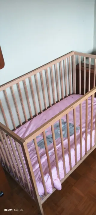 Cuna de madera de Ikea, NUEVA SIN USO - Estructura de madera clara. - 60x120 - Dos alturas - entrega en mano en Gijón #ikea #ikeacuna #cunaikea #cuna #bebe #cunabebe
