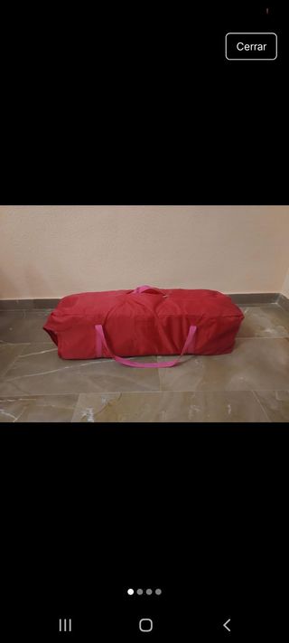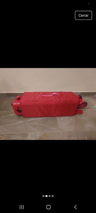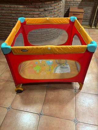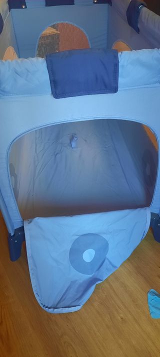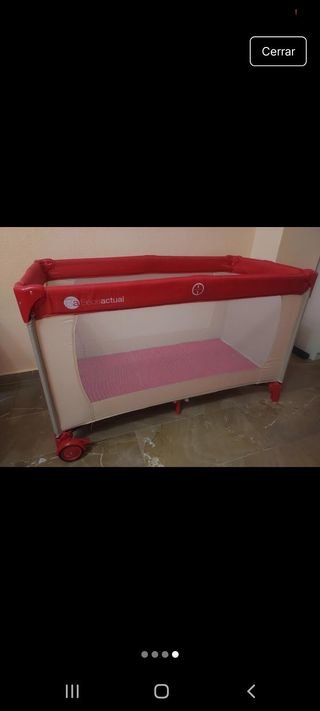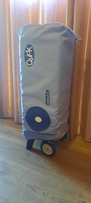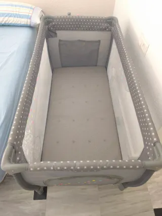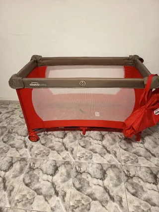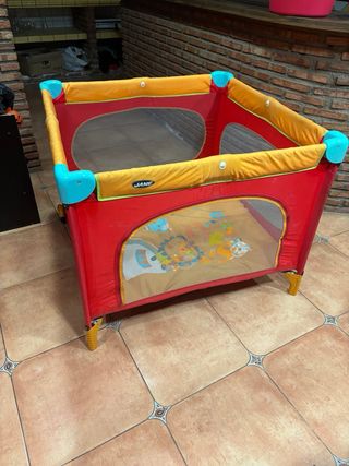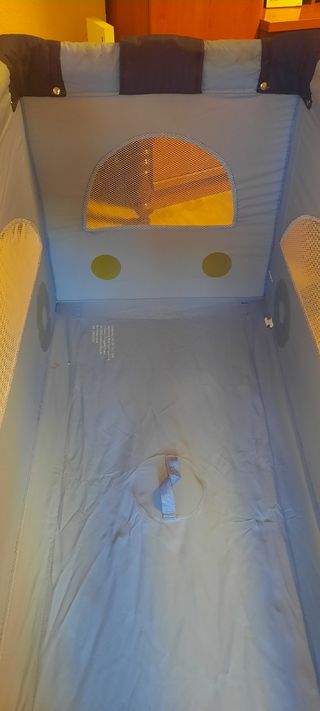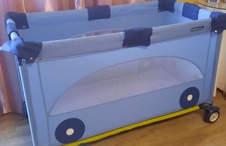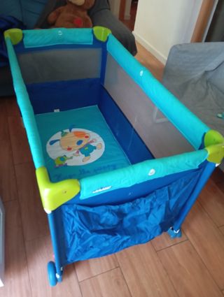 cuna de viaje muy robusta y buen estado, con plataforma inferior que le aporta robustez, se regala colchón en buen estado - Estructura plegable. - Laterales de malla transpirable. - Incluye bolsa de transporte.