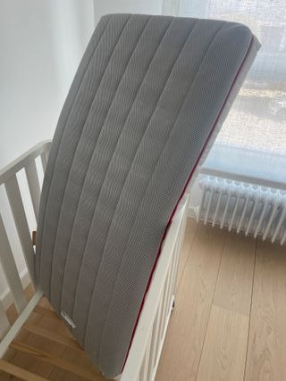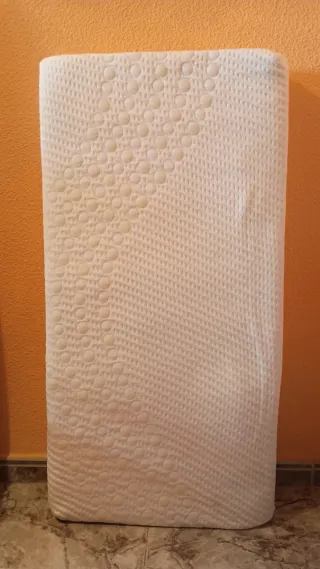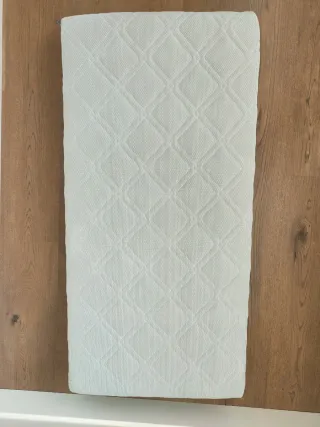 Colchón para cuna o parque infantil con unas medidas de 60x120 cm. - Textura suave y confortable. - Bordes redondeados. - Tiene muy poco uso, se usaba en segunda residencia en días puntuales de vacaciones. - Siempre usado con protector, no tiene ninguna mancha. Se puede vender en Granada o en Jaén!
