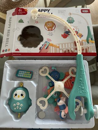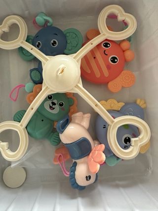 Este móvil de actividades es perfecto para entretener a tu bebé. - Incluye peluches de colores con formas de animales. - Se cuelga fácilmente de la cuna o el cochecito.