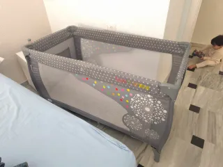 Parque cuna en excelente estado, prácticamente sin uso. - Diseño con estampado de puntos grises. - Laterales de malla transpirable. - Estampado de barco pirata en uno de los laterales.