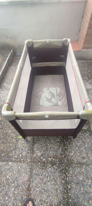 Cuna plegable para bebé, práctica y resistente. De las que solucionan la vida. Medidas abierta: 65,5 × 125,5 cm Incluye colchón plegable firme, que hace también de somier. Qué la hace útil: - Se monta y se pliega en minutos. - Ocupa poco espacio guardada. - Laterales de rejilla transpirable. - Ventana lateral con cremallera. - Bolsillo exterior. - Bolsa de transporte original incluida. Perfecta para: - Casa de abuelos o tíos. - Viajes, camping o segunda residencia. - Tenerla “por si acaso”. Traducción: La dejas en casa de los abuelos y ya no hay excusas para no quedarse al bebé. Tú sales a cenar tranquilo. Buen estado.