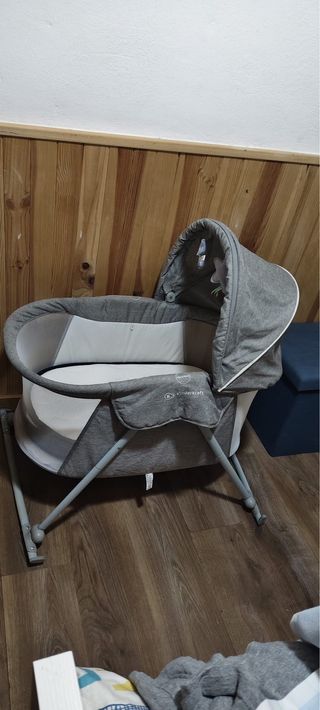 Minicuna de colecho Iora de Maxi-Cosi en perfecto estado, casi nueva. Ideal para tener al bebé cerca. - Color gris claro. - Estructura metálica. - Laterales de malla transpirable. - Cesta inferior de almacenamiento.