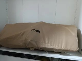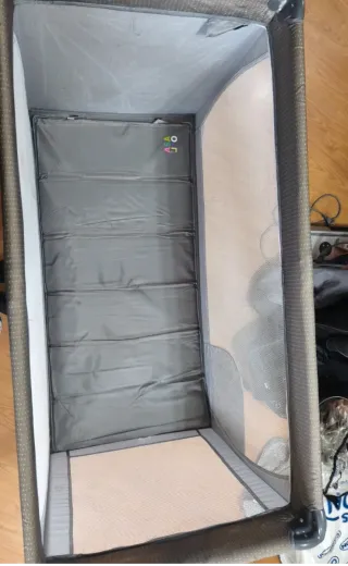 Cuna de viaje de la marca Jane en color beige. Se encuentra en buen estado. 124x66x78 cm - Diseño práctico y funcional. - Laterales de malla transpirable. Tiene una imperfección: un lado no se extiende completamente recto