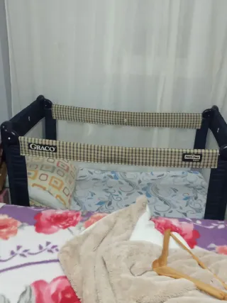 Preciosa cuna de viaje para bebé, ideal para viajes o para tener en casa como cama supletoria. Se encuentra en muy buen estado. - Estructura ligera y fácil de montar y desmontar. - Tejido de malla transpirable. - Incluye colchón.