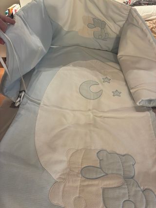 Colchon de cuna de 60X120 Incluyo edredón nordico con funda y la chichonera a juego. Una almohada y una funda de almohada de verano. 2 juegos completos de sábanas de invierno y otras 3 sabanas bajaras de invierno.