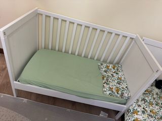 Precio por unidad, 2 Cunas SUNDVIK de IKEA en color blanco. Ideal para el descanso del bebé. - Diseño de barrotes. - Laterales con paneles. - Colchón incluido. - Dos posiciones - Los laterales de barreras también los tengo en buenas condiciones aunque no se ven en las fotos - Incluyen colchón