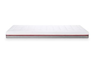 Colchón Ecus Kids Pigü Antiplagiocefalia transpirable para maxi cuna infantil en perfecto estado - Medidas: 70 x 140 cm. - Diseño con ribete rojo y base gris.