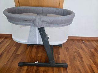 Cuna de bebé de la marca Maïka, ideal para los primeros meses del recién nacido. Se puede utilizar desde el nacimiento hasta los 5 o 6 meses, según el tamaño del bebé. Añado sin coste adicional un colchón de la marca francesa "Atelier de Morphée". Características técnicas: Cuna desenfundable y colchón desenfundable. - Rueda delantera - Estructura de metal - Laterales de malla transpirable - Altura ajustable Dimensiones 80 x 50 x 61-75,5 cm (altura ajustable). - Peso: 8,4 kg. - Ha sido utilizado, pero está en muy buen estado. Recogida en mano (posibilidad de acordar entrega según la ubicación).