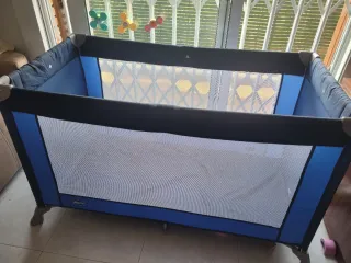 Cuna de viaje en muy buen estado, ideal para viajes o para usar en casa. Dispone de ruedas para moverla fácilmente y dos niveles de altura para el colchón: – nivel superior para recién nacidos – nivel inferior para bebés más grandes Laterales de malla para buena ventilación y visibilidad del bebé. Se vende con colchón de coco (más firme y transpirable) y 2 juegos de sábanas IKEA, todo limpio y bien cuidado. Fácil de plegar y transportar. Hogar sin humo ni mascotas.
