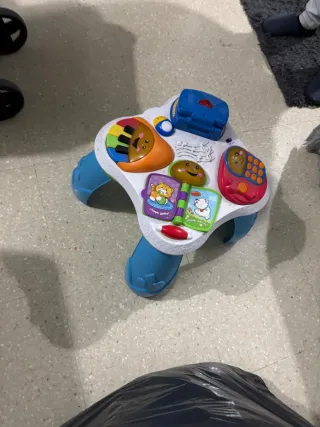 Mesa de actividades interactiva para bebés con múltiples juegos. - Piano de colores. - Teléfono de juguete. - Libros con imágenes. - Patas de soporte estables.