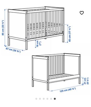 Vendo cuna de bebé de Ikea porque ya no la necesitamos. Es de madera blanca, está en perfecto estado. Es la Sundvik, y tiene varias posiciones de altura