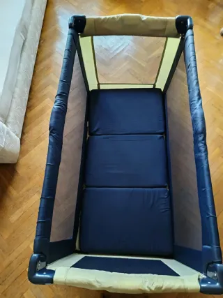 Cuna de viaje de la marca Nurse en color azul marino. Se encuentra en buen estado. - Diseño plegable para facilitar su transporte y almacenamiento. - Laterales de malla para una buena ventilación. - Colchoneta incluida.
