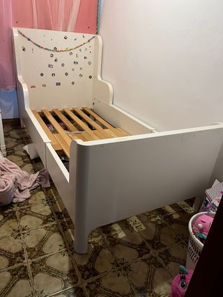 Cama infantil de color blanco con un diseño moderno y divertido Mide 88cm x 200cm El largo se puede encojer hasta llegar a 120cm