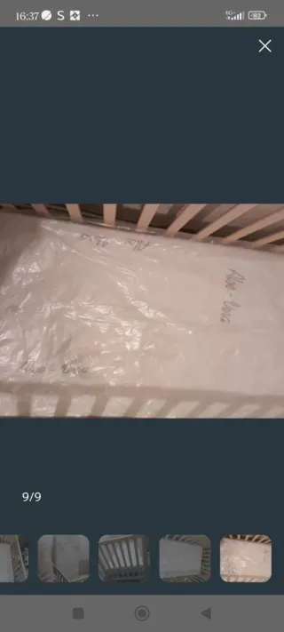 Se vende cuna de bebé junto con un colchón nuevo que aún conserva el plástico protector. - Cuna de madera. - Colchón sin estrenar.