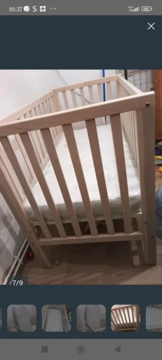 Se vende cuna de madera como nueva, ideal para habitaciones infantiles. Incluye varios accesorios. - Cuna de madera clara. - Colchon. - Protector de colchon. - Protector de cuna. - Cojin. - 3 juegos de cuna para nordico unisex. - Nordico. Cholchon para canviador.