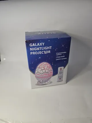 Proyector de luz nocturna con diseño de huevo de dinosaurio y galaxia. - Proyección de galaxia personalizable. - Modo de sueño. - Altavoz integrado. - Incluye mando a distancia.