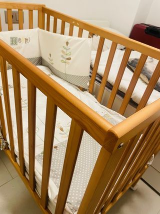 Cuna de madera con colchón