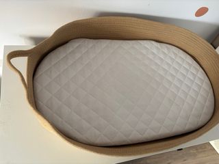 Moisés de palma tejido a mano, perfecto para el descanso del bebé. Incluye un colchón acolchado. - Material: Palma tejida. - Color: Natural. - Incluye colchón blanco acolchado.