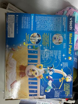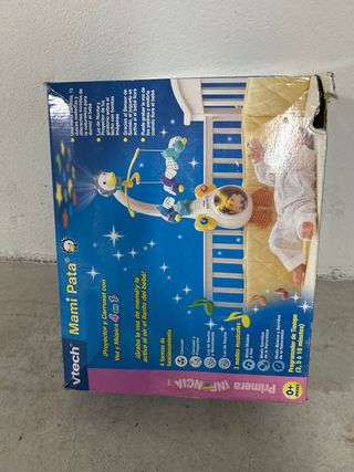 Proyector y carrusel musical de Vtech, modelo Mami Pata. Incluye proyector de luz, melodías y sonidos. - Proyector de luz con imágenes. - Incluye 13 melodías y sonidos de la naturaleza. - Sensor de sonido que activa el juguete si el bebé llora. - Posibilidad de grabar la voz de los padres. - 4 formas de funcionamiento. - 3 modos musicales. - Programador de tiempo (3, 5 o 10 minutos).