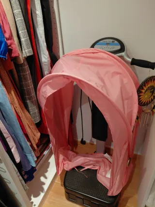 Dosel de tela rosa para decorar la cuna o cama de un niño o niña. Crea un ambiente acogedor y de ensueño. - Color: Rosa. - Material: Tela. - Diseño: Dosel.