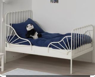 Cama infantil de estilo clásico, perfecta para habitaciones de niños. Su diseño metálico le da un toque elegante. - Estructura de metal blanco. - Cabecero y piecero con barrotes. - Diseño curvo en los laterales.