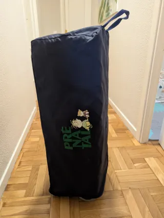 Cuna de viaje de la marca Prenatal. - Color azul marino y colores - Incluye bolsa de transporte.