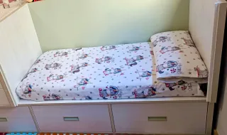Litera infantil de madera con cama inferior. - Estructura de madera clara. - Diseño moderno y funcional. - Doble cama con armario, cajoneras y escalera Está en buen estado se vende por cambió de habitación