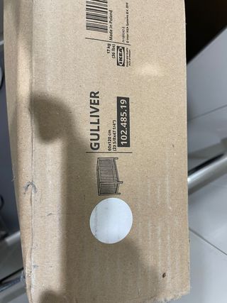 Cuna modelo Gulliver de IKEA, con unas medidas de 60x120 cm. - Fabricada en Polonia. - Diseño y calidad IKEA de Suecia. - Peso: 17 kg (36 lbs).