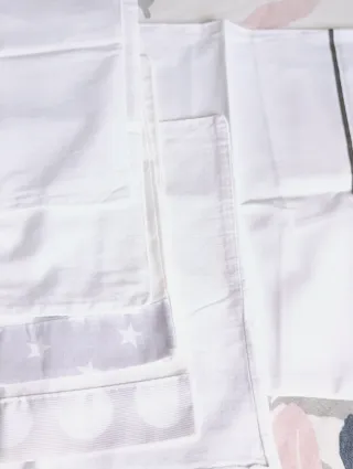 Conjunto de sábanas nórdicas para cuna (60x120) con un divertido estampado de unicornios y estrellas. Incluye: - 3 piezas: sabana bajera, encimera y funda de almohada. - 1 relleno de 250 g desenfundable. - 1 bajera impermeable. Composición: Percal de Algodón 50% i Poliéster 50% de 145 hilos. Comprado en Montse interiors: 39,95€ solo las sábanas nórdicas. Cinco prendas en una que pueden lavarse cómodamente por separado.
