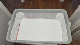 Hola vendo cuna colecho con estructura gris y laterales de malla blanca. Tiene una rueda un poco roto por el peso pero va bien. - Diseño moderno. - Tejido de malla transpirable. - Ruedas para facilitar el movimiento.