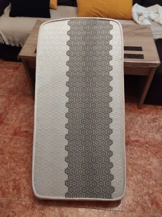 Colchón para cuna de viaje con un diseño acolchado. Comprado en Carrefour por 70€. Usado solo por un mes. - Tejido blanco. - Diseño ondulado. Medidas: Largo: 122 cm Ancho: 62 cm Grosor: 5cm