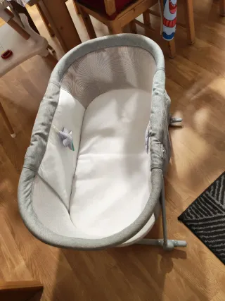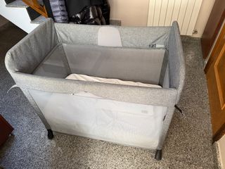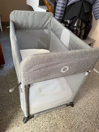 Cuna colecho en perfecto estado, lista para usar. - Incluye bolsa de transporte. - Color gris claro.