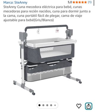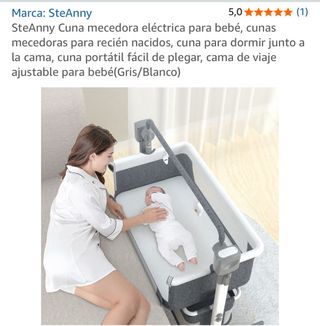 Cuna colecho SteAnny eléctrica, ideal para bebés recién nacidos. Permite dormir junto a la cama y es fácil de plegar. - Color: Gris/Blanco. - Función mecedora eléctrica. - Incluye música.